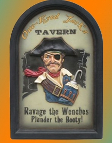 Piraat wanddeco met zwaard in mond ca 45 cm